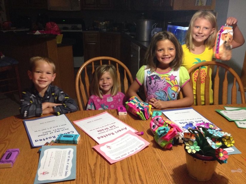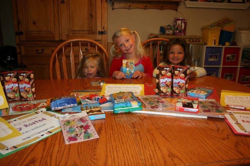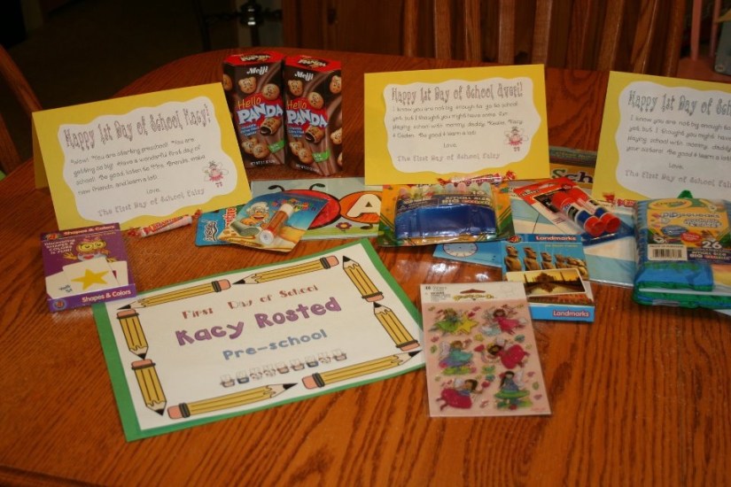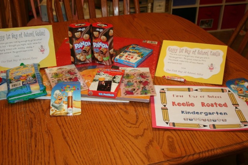 We’ve been doing this tradition since our oldest, Keelie, started Kindergarten. Since the other kiddos were too little to go to school, the First Day of School Fairy brought some fun things so they could “play school” at home while their big sister went to school.